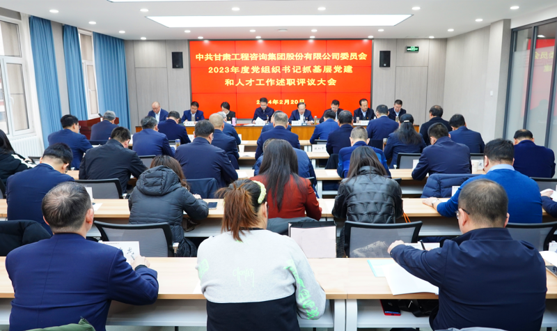 2月20日,甘肅工程咨詢集團公司黨委召開2023年度黨組織書記抓基層黨建和人才工作述職評議考核大會,集團公司黨委書記、董事長馬明出席并講話,黨委副書記、總經理張佩峰主持會議,集團公司領導班子成員參加會議。