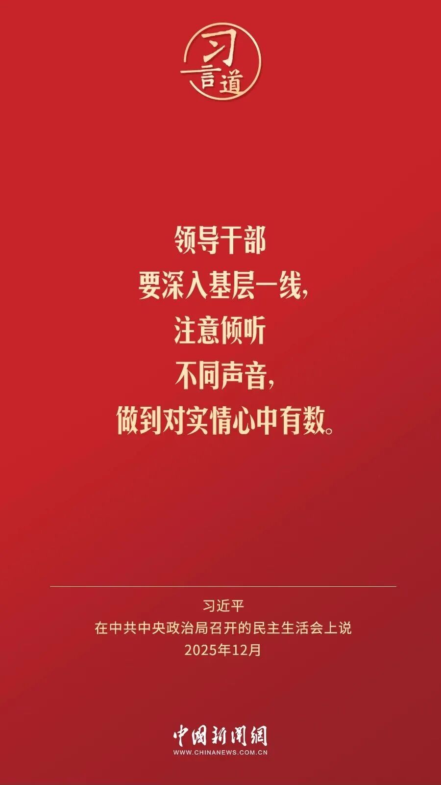 12月25日至26日,中共中央政治局召開民主生活會,中共中央總書記習(xí)近平主持會議并發(fā)表重要講話。習(xí)近平強調(diào)——