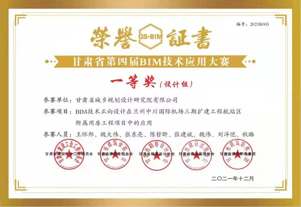 日前,甘肅省建設工會工作委員會、甘肅省建筑業聯合會、甘肅省勘察設計協會、甘肅省建設監理協會、甘肅省建筑職教集團聯合舉辦的“2021年甘肅省職工職業技能競賽暨甘肅省第四屆BIM技術應用大賽”評選結果揭曉,甘肅省城鄉規劃設計研究院有限公司“BIM技術正向設計在蘭州中川國際機場三期擴建工程航站區附屬用房工程項目中的應用”獲得“BIM技術應用作品征集”比賽設計組一等獎;甘肅省建筑設計研究院有限公司“甘肅省臨洮體育訓練基地二期建設(滑冰館)項目BIM技術在總承包管理中的綜合應用”獲得二等獎,“緣善智慧港BIM項目”獲得三等獎;甘肅省建設監理有限責任公司李燕燕獲得“BIM技術技能比賽”三等獎。
