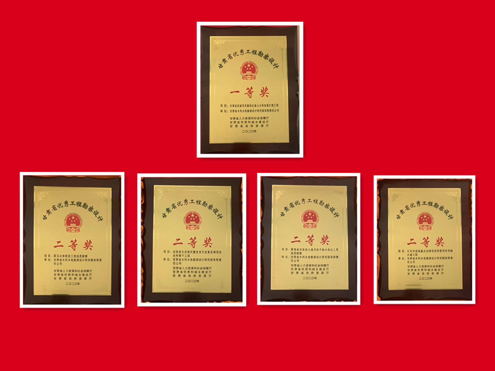 科研成果在工程實(shí)踐中開花結(jié)果,多個(gè)項(xiàng)目獲技術(shù)表彰獎(jiǎng)勵(lì):《民勤縣紅崖山水庫加高擴(kuò)建工程》獲甘肅省優(yōu)秀工程勘察設(shè)計(jì)一等獎(jiǎng);《石羊河流域重點(diǎn)治理項(xiàng)目西營河專用輸水渠工程》《古浪縣生態(tài)移民暨扶貧開發(fā)黃花灘項(xiàng)目水利骨干工程》《大通河納子峽水電站工程地質(zhì)勘察》《昌馬水庫樞紐工程地質(zhì)勘察》分別獲甘肅省優(yōu)秀工程勘察設(shè)計(jì)二等獎(jiǎng);《甘肅中部生態(tài)移民扶貧開發(fā)供水工程可行性研究報(bào)告》獲全國優(yōu)秀工程咨詢成果獎(jiǎng)三等獎(jiǎng);《清水縣“十三五”第二批光伏扶貧電站項(xiàng)目》獲全國優(yōu)秀工程咨詢成果獎(jiǎng)優(yōu)秀獎(jiǎng)。