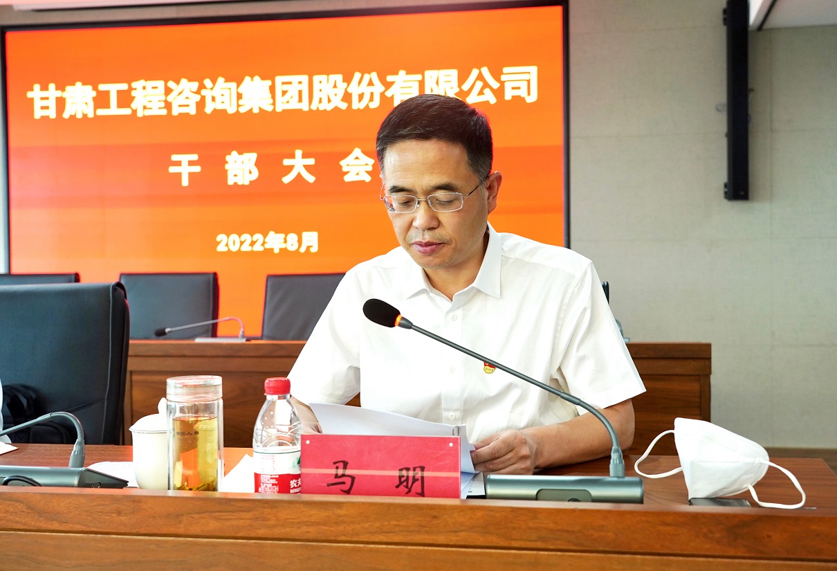 8月2日,甘肅工程咨詢集團(tuán)召開(kāi)干部大會(huì),宣布省委關(guān)于集團(tuán)黨委主要負(fù)責(zé)人任免決定:馬明同志任甘肅工程咨詢集團(tuán)股份有限公司黨委書記,宋忠慶同志不再擔(dān)任甘肅工程咨詢集團(tuán)股份有限公司黨委書記職務(wù)。