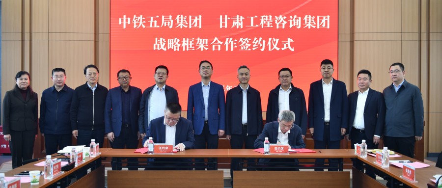 3月12日,甘肅工程咨詢集團股份有限公司與中鐵五局集團有限公司在蘭州簽署戰略框架合作協議。甘肅工程咨詢集團黨委書記、董事長馬明與中國中鐵甘肅總部總經理喬洪濤座談并見證簽約。