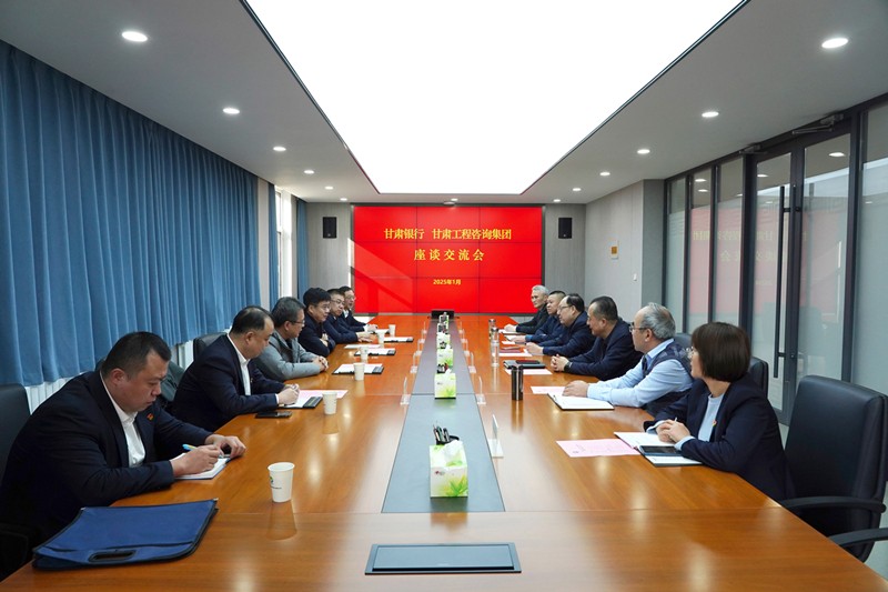 1月15日,甘肅工程咨詢集團(tuán)黨委書記、董事長(zhǎng)張佩峰與來訪的甘肅銀行黨委書記、董事長(zhǎng)劉青就深化銀企合作座談交流。甘肅銀行領(lǐng)導(dǎo)王錫真、杜晶,甘肅工程咨詢集團(tuán)領(lǐng)導(dǎo)成少平參加。