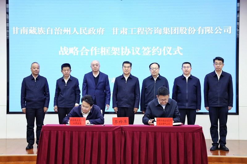10月14日,甘肅工程咨詢集團與甘南州人民政府簽訂戰略合作框架協議。甘南州委書記何謀保,甘肅工程咨詢集團黨委書記、董事長張佩峰出席儀式并致辭。