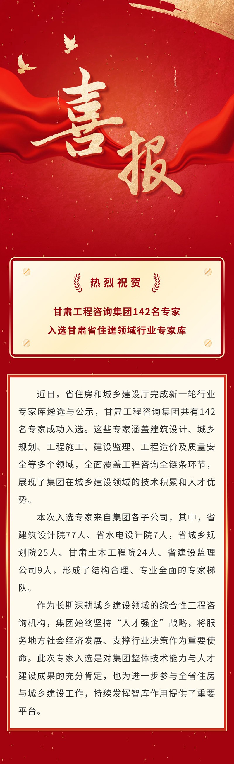 喜報 | 甘肅工程咨詢集團142名專家入選甘肅省住建領域行業專家庫