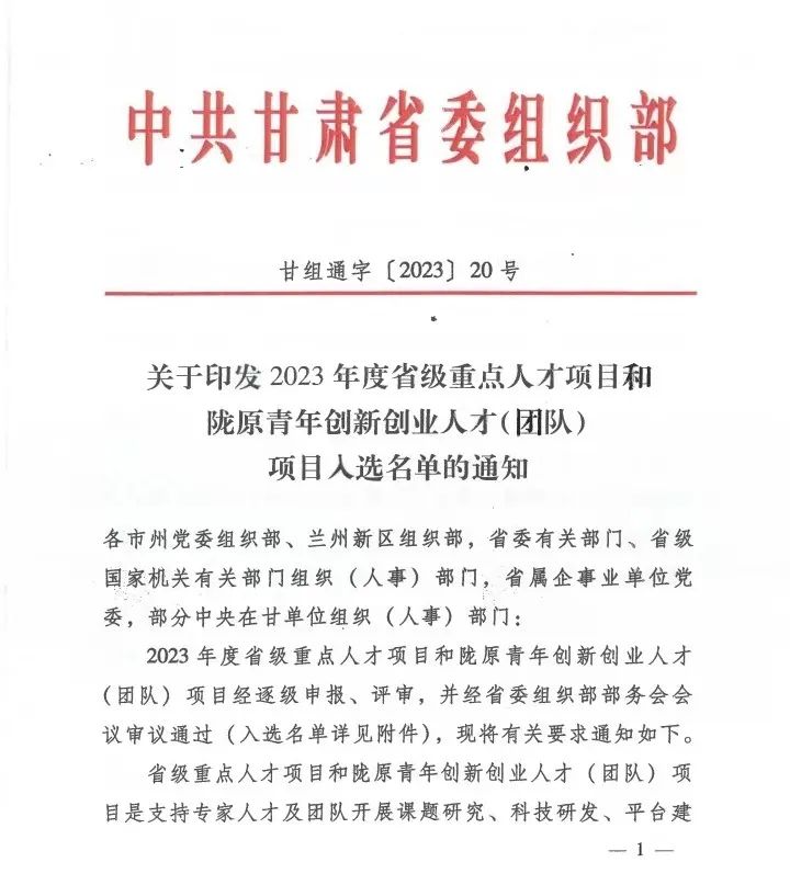 近期,省委組織部印發了《關于印發2023年度省級重點人才項目和隴原青年創新創業人才(團隊)項目入選名單的通知》(甘組通字〔2023〕20號),甘肅工程咨詢集團省建筑設計院張雅慧申報的《鄉村振興與社會生態韌性視角下西北傳統村落的保護與再生利用研究》入選個人項目名單,獲得6萬元經費資助。
