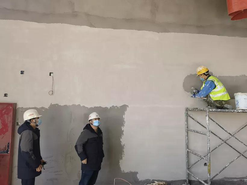 施工現場因勞務人員體量大(高峰值有1300人同時施工)、組織工作難度大、現場需解決的問題較多,監理組負責人張昕朗、總監代表柳曉恩、亢巖多次組織召開專題會議,總結經驗,對施工單位疫情防控工作提出具體做法要求和建議:對施工現場進行全封閉式管理,上、下班由各班組負責人帶領施工人員列隊有序進出現場,回居住點后不得擅自外出;嚴禁集中或外出就餐,飯食由各班組安排1-2人,統一采購后分發;協助施工單位積極組織工人進行核酸檢測,并有序組織各分包單位分批次上下班和就餐;往返工作生活區所有工人穿戴反光馬甲,佩戴口罩測量體溫;做好疫情期間施工人員的心理疏導工作。