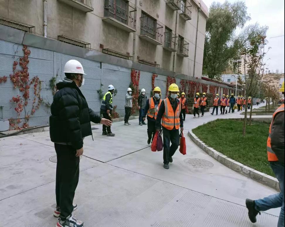 10月28日晚8點,建設監理公司第三事業部蘭州奧體中心項目監理人員像往常一樣結束工作剛回到家中,就在這時,接到次日清晨要對居住小區進行封閉管理的緊急通知,第三事業部經理孫玉杰第一時間向有關領導匯報情況,并與總工李春龍商量對策,最后他們決定,絕不能因為監理人員不能到崗而影響蘭州奧體中心項目建設。要緊關頭,李春龍連夜組織項目監理組成員召開了緊急會議,對疫情防控期間項目監理工作作了具體安排部署,隨后與項目組監理人員寧韶鋒、陳鵬如、劉思誠、閆立學、王碧6人于當晚立即返回施工項目現場,因住宿條件受限未能同行前往的另一名項目組女同志王紅霞也于次日一大早出發到達項目現場。