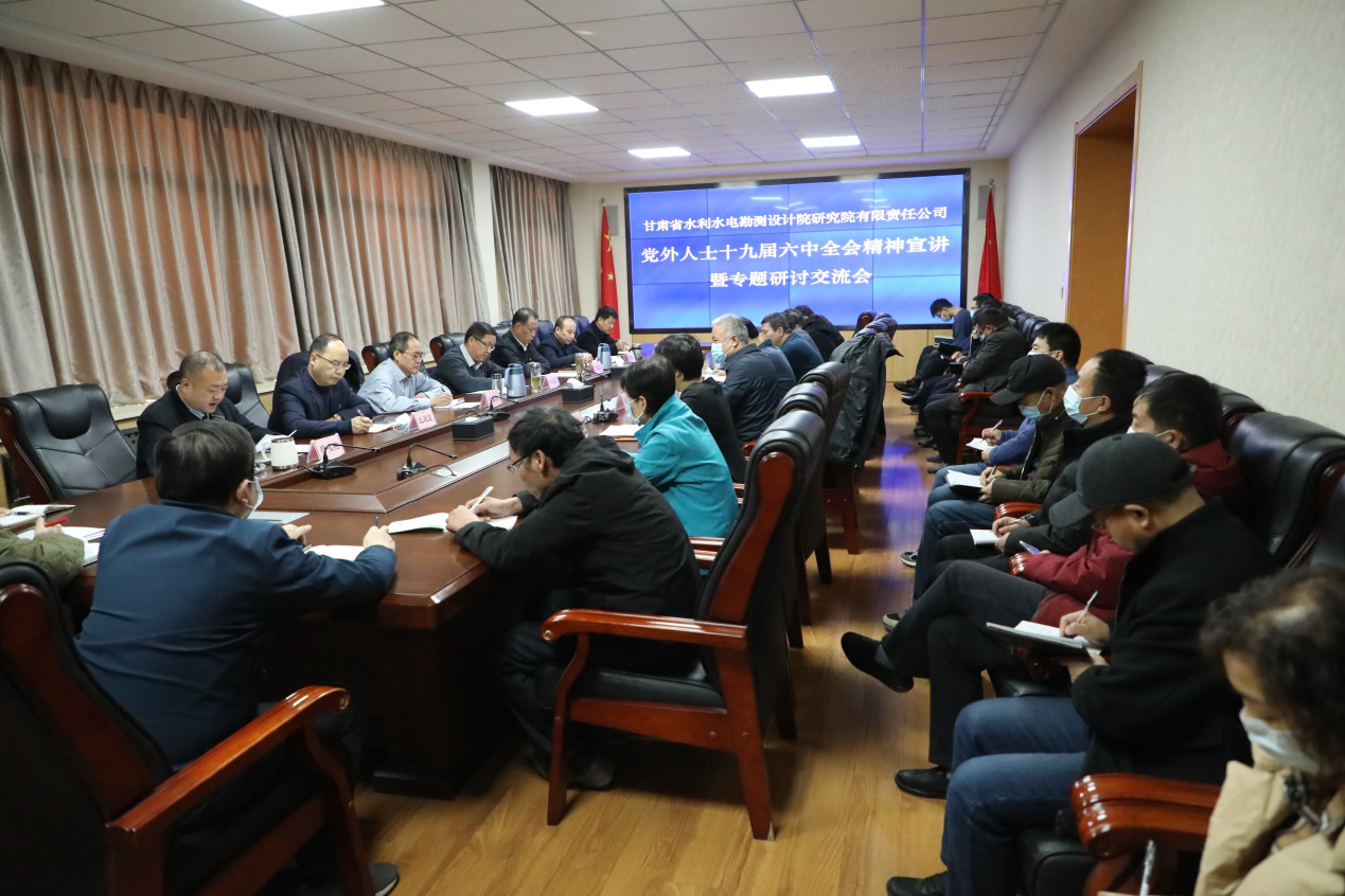 12月13日,水電設(shè)計院組織黨外人士宣講研討中共十九屆六中全會精神,九三學社、民主促進會、無黨派人士、少數(shù)民族和黨外知識分子代表共40余人參加。