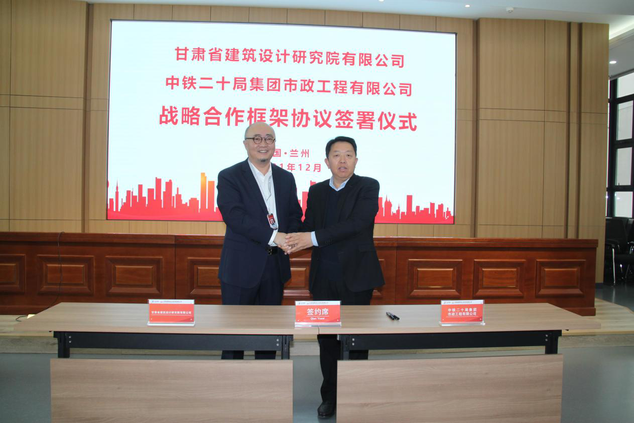 近日,建筑設計院與中鐵二十局市政公司在建筑設計院會議中心舉行戰略合作框架協議簽署儀式。中鐵二十局黨委常委、副總經理苗文懷,西北區域指揮部總經理田培忠,市政公司黨委書記、董事長萬雪琳,房地產公司總經理崔野,建筑設計院董事長米宏圖、黨委書記李向軍、總經理曹慶、副總經理周文新等出席簽約儀式。