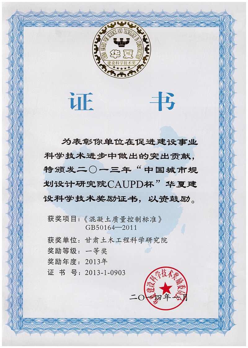 二0一三年“中國(guó)城市規(guī)劃設(shè)計(jì)研究院CAUPD杯”華夏建設(shè)科學(xué)技術(shù)獎(jiǎng)